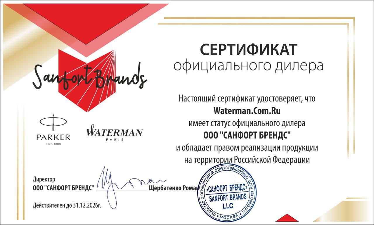 Система заправки: заменяемые стандартные стержни Waterman для шариковых ручек.